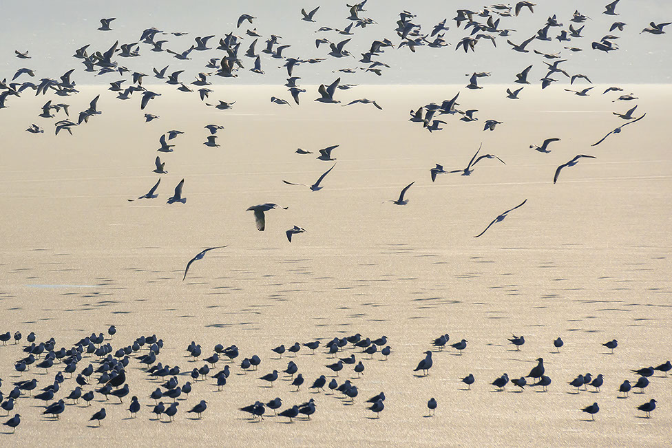 "Sailing Home" - Migrating white pelican.